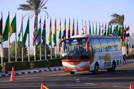 近日,“中非合作論壇第四屆部長級會議”在埃及紅海之濱沙姆沙伊赫順利閉幕。在非洲市場享有盛譽的宇通客車,繼服務(wù)08年北京奧運會及09年國慶60周年閱兵典禮后,又為本次中非合作論壇這項國際級官方會議,提供54輛豪華旅游客車作為會務(wù)用車,接送多國參會代表。美麗的紅海之濱,見證中非友好的車隊一路暢行,而早在4年前,非洲大地上就已出現(xiàn)了宇通客車的身影。如果旅游前往埃及,不管是在開羅還是在紅海之濱沙姆沙伊赫,都有外觀新穎靚麗的宇通客車迎接全球的游客。而在加勒比海畔的古巴,各種型號的宇通客車行駛在古巴的城鄉(xiāng)公路、街頭巷尾。外電稱,宇通車改變了古巴人的生活。