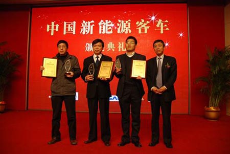 2009年12月7日,由中國(guó)汽車(chē)報(bào)社主辦的“2010年中國(guó)新能源客車(chē)”頒獎(jiǎng)典禮在中央電視臺(tái)梅地亞中心舉行。中國(guó)汽車(chē)報(bào)社社長(zhǎng)兼總編輯、中國(guó)能源報(bào)社總編輯李慶文,中國(guó)汽車(chē)工程研究院副院長(zhǎng)李開(kāi)國(guó),清華大學(xué)汽車(chē)工程開(kāi)發(fā)研究院副院長(zhǎng)宋健,北京航空航天大學(xué)汽車(chē)工程系主任徐向陽(yáng),中國(guó)汽車(chē)工業(yè)協(xié)會(huì)助理秘書(shū)長(zhǎng)杜芳慈等參加頒獎(jiǎng)。中通客車(chē)憑借多年來(lái)新能源技術(shù)的潛心研究與突破,新能源客車(chē)在國(guó)內(nèi)大型活動(dòng)上取得良好的表現(xiàn),此次共獲得年度“最佳混合動(dòng)力客車(chē)”和“最佳純電動(dòng)客車(chē)”兩項(xiàng)大獎(jiǎng)。