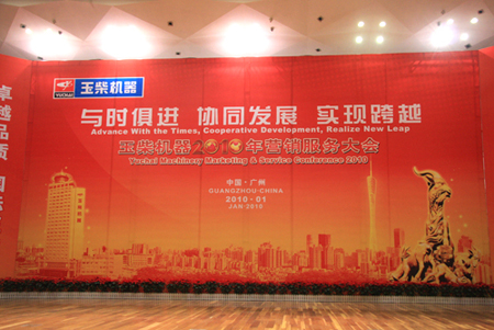2010年1月13日,玉柴機(jī)器2010年營銷服務(wù)大會在美麗的羊城廣州隆重舉行,來自全國各地的1100多名玉柴機(jī)器的經(jīng)銷商、服務(wù)商、主機(jī)廠代表、YC供應(yīng)商聯(lián)合會代表、配件經(jīng)銷商代表,齊聚羊城,共商玉柴機(jī)器營銷服務(wù)大計。中國汽車報、中國工業(yè)報、廣州日報等25家國家和地方級新聞媒體對大會進(jìn)行了即時報道。