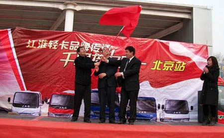 江淮輕卡天津地區(qū)經(jīng)銷商從北京經(jīng)銷商手中接過活動大旗