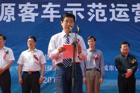 聊城市委常委、副市長侯軍在儀式上講話表示,聊城市始終把新能源汽車產(chǎn)業(yè)作為戰(zhàn)略性新興產(chǎn)業(yè)來培養(yǎng),特別是把新能源客車作為加快聊城發(fā)展方式改變和產(chǎn)業(yè)結(jié)構(gòu)調(diào)整的關(guān)鍵。早在2004年就由聊城市政府牽頭成立了電動客車產(chǎn)業(yè)化領(lǐng)導(dǎo)小組,多次走訪國家科技部、863計劃科研項目組、各大專院校等,幫助中通客車等企業(yè)不斷發(fā)展壯大。在國家“十城千輛”新能源汽車大規(guī)模推廣政策和山東省系列新能源汽車示范推廣計劃的帶動下,聊城市將一馬當先的貫徹新能源汽車發(fā)展戰(zhàn)略,爭取在5年內(nèi)將市區(qū)60%以上的公交車更換為新能源客車。