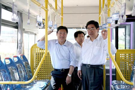 隨后,在制造二部停車廣場,胡廳長一行對我公司自主研發(fā)的混合動力城市客車、純電動城市客車、星際豪華大客等車輛進行了視察。胡廳長一行對少林牌SLG6105EV純電動城市客車極為感興趣,親自試乘車輛,在我公司綜合道路試驗場搓板路、扭曲路、魚鱗坑、卵石路等各種路況下進行了乘車體驗,感受其強勁的動力性能及爬坡、制動性能,并對其各方面性能給予了較好的評價。試乘過程中,胡廳長一行對本款車型的磷酸鐵鋰動力電池、單次充電續(xù)駛里程、控制器等技術(shù)內(nèi)容以及配置、性價比等方面進行了詳細的詢問。