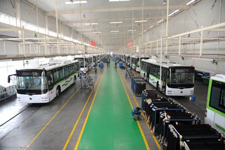 生產(chǎn)線上的恒通氣/電混合動(dòng)力客車