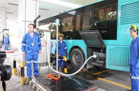 代表們?cè)嚦肆宋逯摭圠NG(液化天然氣)公交車(chē)、混合動(dòng)力公交車(chē),并參觀了五洲龍混合動(dòng)力公交車(chē)充電站、LNG公交車(chē)加氣站等,評(píng)價(jià)道:“新能源公交車(chē)真舒適、真環(huán)保!”