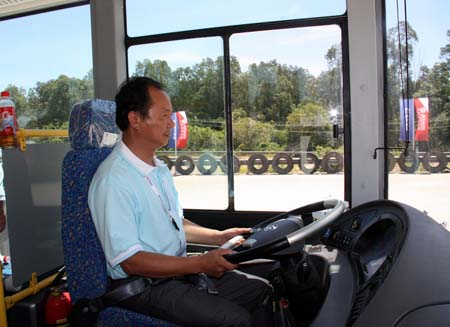 與會嘉賓試乘裝配自動變速箱的大金龍公交車6900G