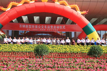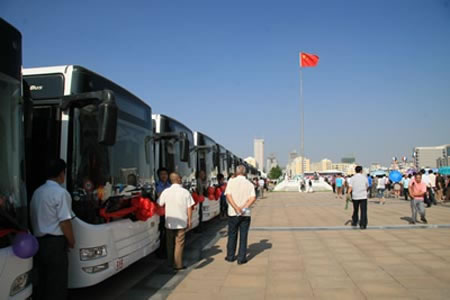 7月29日上午10點(diǎn)整,鄂爾多斯百輛新型環(huán)保公交車上線運(yùn)營儀式在鄂爾多斯東勝區(qū)區(qū)政府廣場前隆重舉行。此次活動(dòng)是由東勝區(qū)政府主辦,天安公交集團(tuán)承辦,得到了鄂爾多斯政府的大力支持。來自東勝區(qū)領(lǐng)導(dǎo)、公交企業(yè)、中標(biāo)汽車廠商、新聞媒體、觀眾等2000余位代表共同見證了鄂爾多斯打造民生、低碳公交的決心。