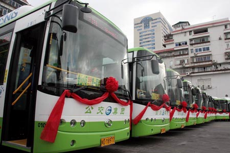 首批50輛CNG公交車當(dāng)天投入使用
