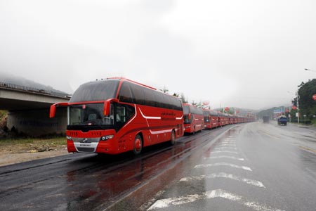 2010年8月14日,在一片微微細(xì)雨中20輛黃海豪華大巴緩緩駛出丹東黃海廠區(qū),向大連港駛?cè)?,即將裝船遠(yuǎn)赴沙特,投入當(dāng)?shù)氐穆糜斡^光市場(chǎng)和朝圣之旅。