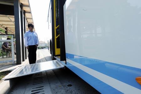 8月1日,蘇州市首輛無障礙公交車在市公交10路南線投入運(yùn)行。這款無障礙公交車系蘇州金龍生產(chǎn),車型為海格KLQ6129GQ1,該車具有獨(dú)特的方便殘疾乘客的設(shè)計(jì),使用輪椅的殘疾人,通過車上獨(dú)特的電動(dòng)伸縮踏板和輪椅固定裝置可以安全方便地乘坐公交車出行。