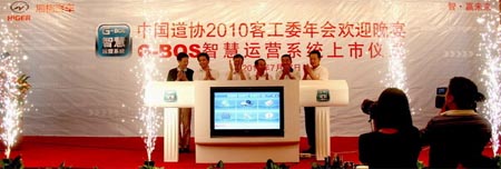 年會(huì)晚宴現(xiàn)場,由海格客車贊助并借機(jī)力推出蓄謀良久的秘密武器——G-BOS智慧運(yùn)營系統(tǒng)。南國夏天,行業(yè)聚會(huì),酒不醉人人自醉。上市儀式僅用10分鐘,緊湊、簡潔但主題鮮明。在此之前,作為熱場的一段4分鐘視頻,炫麗科技的3D畫面、動(dòng)感激進(jìn)的音樂旋律、極具感染力的旁白。現(xiàn)場頓時(shí)從嘈雜變得安靜。這套被名為“G-BOS智慧運(yùn)營系統(tǒng)”的新裝備隆重上市。為客車運(yùn)營商量身定制的整合“人”“車”“線”三大要素的新一代智能運(yùn)營管理工具。