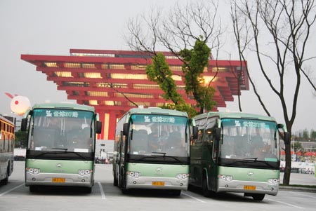 中國(guó)館前的37路世博專線海格客車