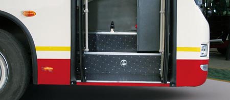恒通紐曼CKZ6116前置二級踏步公交客車便是其中的佼佼者,該車型是國內(nèi)首創(chuàng)的前置發(fā)動機(jī)低地板客車(地板離地高度僅為650mm)。相比普通前置客車的三級踏步結(jié)構(gòu),二級踏步因?yàn)殡x地更低,在運(yùn)行過程中和后置客車一樣平穩(wěn)舒適,同時(shí)乘客上下的流通速度上也大大提高,按平均每個(gè)乘客較三級踏步節(jié)約1秒計(jì)算,每站上下15-25人,往返30-35個(gè)站點(diǎn)計(jì)算,該車每趟便可節(jié)省15-20分鐘左右的交互時(shí)間,大大增加運(yùn)營時(shí)間。