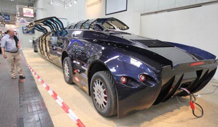這輛車采用了輕量化的碳纖維材料,并有四個電機驅(qū)動,最高設(shè)計車速達到250km/h。不過,到目前為止,測試的最高車速僅僅達到80km/h而已,要達到最高設(shè)計車速,還需要進行進一步的測試。