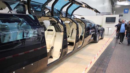 從車輛的前臉看,更像是一款跑車,從側(cè)面看則和加長車外形有些類似,不過這可不是給大家婚禮車隊用的,它是一款面向未來的“超級巴士”。展開的鷗翼車門仿佛在向大家招手:“大家都進來吧,我這里總共可以坐下23人呢?!?
