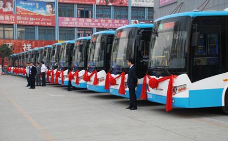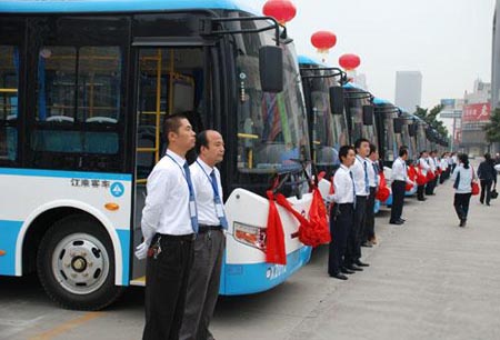 10月1日上午7:40,合肥市新站區(qū)中綠廣場(chǎng)鑼鼓喧天,鞭炮齊鳴,70輛嶄新的江淮客車(chē)HK6813G作為社區(qū)巴士,“頭”戴大紅花、“身”披紅腰帶從這里次第發(fā)車(chē),正式投入合肥新站、經(jīng)開(kāi)、高新三大開(kāi)發(fā)區(qū)6條支線(xiàn)公交線(xiàn)路運(yùn)營(yíng)。前來(lái)廣場(chǎng)觀看發(fā)車(chē)儀式的新站工業(yè)園區(qū)員工與附近小區(qū)居民歡呼聲一片,共同慶祝這美好的時(shí)刻。
