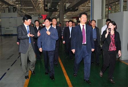 國家質(zhì)檢總局總檢驗(yàn)師項(xiàng)玉章、江西省人民政府副省長洪禮和等一行參觀江鈴工廠