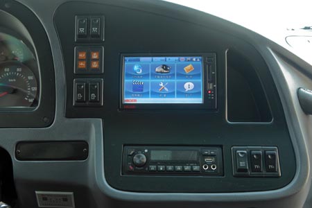此次的試駕車型是搭載玉柴YC6L330-42的H92客車,因裝配了G-BOS而與眾不同。啟動后,G-BOS的終端便顯示出車輛運行工況的基本信息。該終端采集了發(fā)動機的十大工作信息,駕駛操作的九大工作信息,以及車輛行駛的7個工作信息,這26個信息支撐起了軟件的運載平臺。說實話,剛接觸G-BOS版H92有點躡手躡腳,想著所有的一舉一動都被監(jiān)控下來心里總有些不安。該系統(tǒng)能監(jiān)控駕駛員諸如超速行車、空檔滑行、發(fā)動機高轉(zhuǎn)速以及超長時間駕駛等不良駕駛行為,并可最終形成一個報表,使運營方對車輛的使用狀況有一個全面的了解。這畢竟不是什么壞事,它能潛意識中培養(yǎng)你的駕駛意識和道德,改善駕駛習(xí)慣,而且能節(jié)省燃油。
