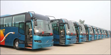 此次大量訂購的VOLVO 9300客車,是西沃2005年底上市的產(chǎn)品,該系列客車匯聚了國人的共同審美,得益于眾多熱心客戶的建議及西沃研發(fā)團(tuán)隊(duì)的創(chuàng)新合作,多項(xiàng)來自客戶的合理化建議在VOLVO 9300系列得到了充分體現(xiàn),使其擁有賞心悅目的整體外形與溫馨舒適的內(nèi)部空間。進(jìn)一步優(yōu)化底盤結(jié)構(gòu),提高底盤強(qiáng)度和承載能力。使整車經(jīng)濟(jì)性更高。選用動(dòng)力強(qiáng)勁、注重環(huán)保的VOLVO電控燃油噴射發(fā)動(dòng)機(jī),其燃油經(jīng)濟(jì)性更好,并且通過了嚴(yán)格的Euro 3 認(rèn)證。車身結(jié)構(gòu)引入了瑞典VOLVO客車公司的多項(xiàng)新技術(shù),使其擁有充滿表現(xiàn)力的前臉。骨架材質(zhì)為高強(qiáng)度耐腐蝕的低碳合金鋼,采用多階段浸入式防腐工藝,使得車身的安全性更高,使用壽命更長久。車內(nèi)整個(gè)空氣調(diào)節(jié)系統(tǒng)作了全新的改進(jìn),循環(huán)通風(fēng)量增加,使車內(nèi)可以一直保持新鮮的空氣,乘客的健康得到了保證。由于車身結(jié)構(gòu)的全新設(shè)計(jì),加上內(nèi)飾材料及工藝的改進(jìn),使乘客在不失速度的情況下盡享車內(nèi)的寧靜與溫馨。該車在2007年北京舉辦的“第三屆中國國際客車大賽”、“第二屆中國客車節(jié)油大賽”中榮獲大型公路客車金獎(jiǎng)和大型高級(jí)公路客車節(jié)油型客車獎(jiǎng),成為大型豪華客車市場(chǎng)上一顆耀眼的明星。