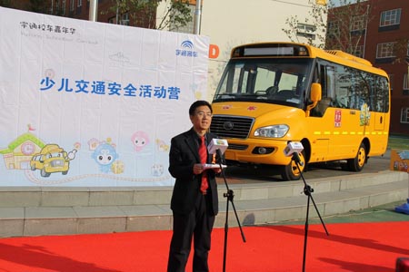 10月27日,北京市海淀區(qū)中關(guān)村二小的學(xué)生迎來了一個特殊的下午,由國內(nèi)客車第一品牌宇通客車主辦的一場別開生面的“校車嘉年華”讓寧靜的校園仿佛變成了歡樂谷。在國家關(guān)心下一代工作委員會教育發(fā)展中心副秘書長鄭勇生、北京市教育交通等管理部門領(lǐng)導(dǎo)、海淀區(qū)教委、交警支隊相關(guān)領(lǐng)導(dǎo)、海淀區(qū)25所小學(xué)校長、校車運輸公司代表、學(xué)生家長代表、以及國內(nèi)主流媒體的共同見證下,“宇通校車嘉年華”正式拉開帷幕。