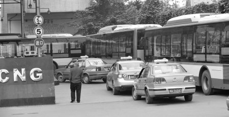 加氣站公交車出租車排隊加氣