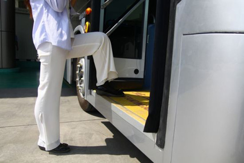 地板采用一級(jí)踏步的全通道低地板工藝設(shè)計(jì),再加上ECAS電控空氣懸架系統(tǒng),實(shí)現(xiàn)整車高度調(diào)節(jié)及側(cè)跪功能,不管是老人、小孩都可輕松上下,極為方便。