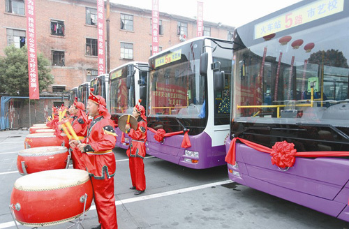 答:今年是城市公交集團的“2010服務創(chuàng)新年”,其重要舉措之一就是要通過購置一批高檔豪華空調(diào)公交車,提升公交硬件服務檔次,打造公交“精品示范線”,以進一步改善市民乘車環(huán)境、提升城市功能和形象品牌。為此,今年以來,我們已累計自籌資金5000多萬元,共購置廈門金龍、蘇州金龍等豪華空調(diào)公交車達127臺,已分別投放到4路、56路、18路、15路營運,今天這30臺豪華空調(diào)車將投放到5路線。截至目前,城市公交集團兩年多來已累計更新車輛570余臺,占車輛總數(shù)的85%,其中豪華空調(diào)公交車達272臺,占更新車輛總數(shù)的47.7%;累計投入車輛更新資金近億元,使企業(yè)總資產(chǎn)由2500萬元增至1.2億元,國有資產(chǎn)增加3.8倍。
