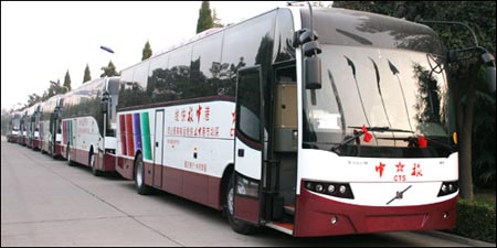 此次深圳市港中旅快線運輸有限公司訂購的VOLVO 9300豪華大客車,整車造型美觀、氣派,線條流暢優(yōu)美,外形高雅大方、極富動感。特別是該車由于車身結(jié)構(gòu)的全新設(shè)計,加上內(nèi)飾材料及工藝的改進,車內(nèi)噪音和振動遠遠低于國家標準,使乘客在不失速度的情況下盡享車內(nèi)的寧靜與溫馨。駕艙采用新一代客車電器構(gòu)造系統(tǒng)BEA2.0,這使駕駛員在駕駛客車過程中輕松掌握客車詳盡的運行狀況。VOLVO 9300作為西沃最暢銷的產(chǎn)品之一,在客運市場上深受客戶歡迎,西漢高速客運公司、西康高速客運公司、遼寧虎躍快速汽車客運有限公司和西安至天水高速客運班線均大批量的購買了該系列車型。