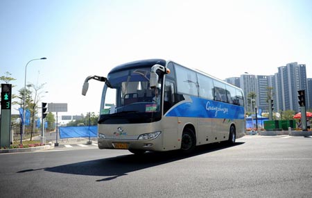 2010年11月12日,第16屆亞運(yùn)會(huì)在廣州正式開(kāi)幕,在為期16天的比賽中,來(lái)自45個(gè)亞洲國(guó)家和地區(qū)的9600多名運(yùn)動(dòng)員在賽場(chǎng)內(nèi)爭(zhēng)金奪銀成為觀眾關(guān)注的焦點(diǎn);而在賽場(chǎng)之外,造型時(shí)尚、色彩繽紛的數(shù)千輛服務(wù)廣州亞運(yùn)的客車迎來(lái)送往,同樣成為素有“花城”之稱的廣州街頭一道獨(dú)特的風(fēng)景線。