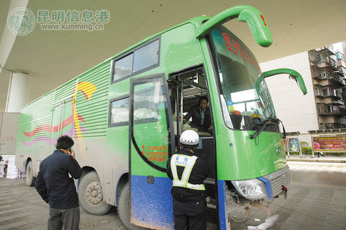 記者趕到官南路時(shí),張先生所說(shuō)的“大客車(chē)”正在卸貨。遠(yuǎn)遠(yuǎn)看去,這輛車(chē)和長(zhǎng)途大客車(chē)一樣,尤其是車(chē)頭,和客車(chē)完全一樣。在車(chē)前擋風(fēng)玻璃上貼著“昆明至雙江零擔(dān)快運(yùn)”字樣。
