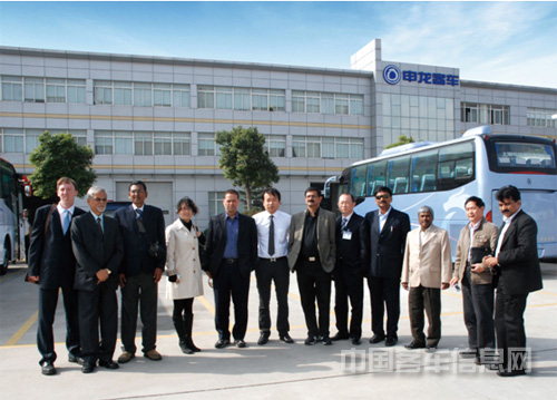 2010年11月22日上午,來(lái)自印度“國(guó)際道路運(yùn)輸聯(lián)合會(huì)”的領(lǐng)導(dǎo)考察團(tuán)一行人在上海申龍客車有限公司陳大城董事長(zhǎng)、黎明副總經(jīng)理陪同下參觀了申龍客車的生產(chǎn)車間以及即將出口泰國(guó)、印度的申龍客車產(chǎn)品。