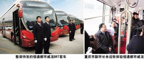 早在2008年1月,重慶第一條快速公交(BRT)示范線——高九路示范線竣工通車,這在重慶公交發(fā)展史上具有里程碑式意義。而服務(wù)這條BRT線路的客車就是恒通都市•威龍客車。時任重慶市副市長余遠牧、重慶市公交集團董事長楊茂超等領(lǐng)導及來自各大媒體、近千市民共同見證了都市•威龍開始BTR線路運營的重要時刻。