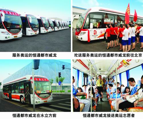 2008年,還有一個值得所有中國人自豪的大事——北京奧運會盛大舉行。10輛外觀時尚靚麗,內(nèi)部豪華舒適的恒通都市•威龍一級踏步純天然氣客車代表重慶市成為北京奧運會指定用車成員,承載著恒通人的榮譽與夢想,從恒通工業(yè)園出發(fā),一路向北,歷經(jīng)四川、陜西、河南、河北最后到達首都北京,服務(wù)奧運。服務(wù)期間,都市•威龍擔負起接送奧運呼叫中心的工作人員和志愿者的重任,為包括高校學生、在京留學生、在職客服人員、行業(yè)內(nèi)高管人員、離退休外事工作者等來自各行各業(yè)人士提供了優(yōu)質(zhì)的服務(wù),其寬敞舒適的空間,時尚大氣的外形獲得了組委會及乘坐人員的一致好評,出色的完成了服務(wù)奧運任務(wù)。