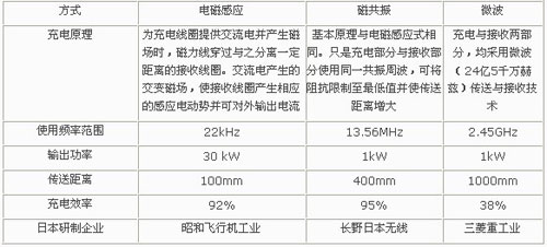 長野日本無線公司,于2009年8月宣布開發(fā)出了基于磁共振的充電系統(tǒng)。與電磁感應(yīng)方式相比,磁共振方式具有傳送距離長、停車誤差要求低等優(yōu)點(diǎn)??梢栽?00mm的傳輸距離內(nèi)確保90%的傳送效率。但目前的傳送功率還比較?。s1kW左右),擬定從叉車等使用范圍進(jìn)入市場,伴隨著技術(shù)成熟程度和傳送功率的提高,有望很快進(jìn)入電動(dòng)車電充電領(lǐng)域。