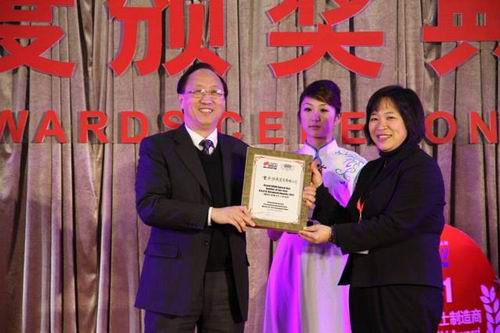 恒通客車執(zhí)行董事鄧平領取世界客車聯(lián)盟頒發(fā)的BAAV 2011 “年度最佳巴士制造商”大獎