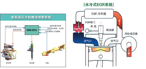 MD9M發(fā)動(dòng)機(jī)為了使進(jìn)排氣的流動(dòng)性達(dá)到最合理化,采用了最先進(jìn)的新型高壓共軌燃油噴射系統(tǒng)和水冷式EGR系統(tǒng)等組件。通過細(xì)致的空氣管理,對(duì)排氣中的污染物進(jìn)行有效的控制,從而輕松達(dá)到國(guó)3排放標(biāo)準(zhǔn)。