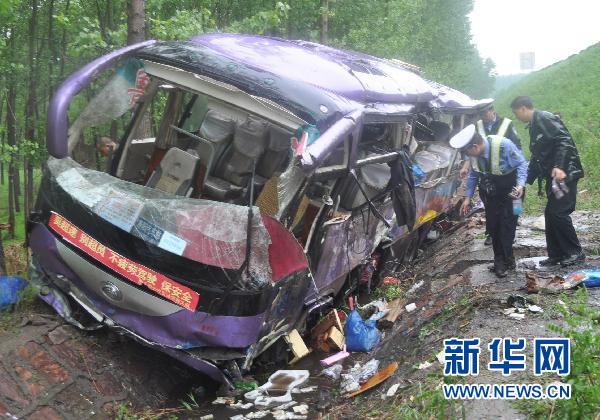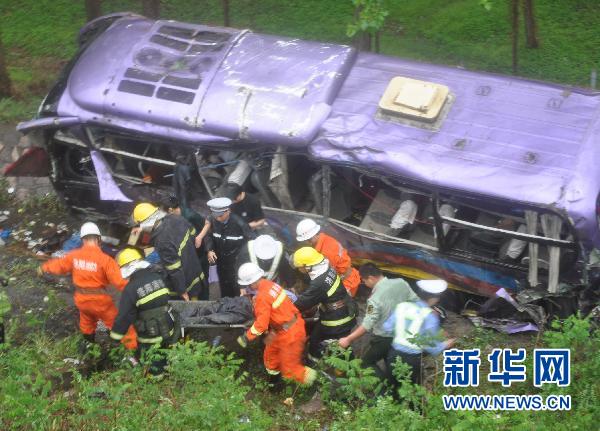 河南二廣高速一客車翻下深溝 造成2死38傷(圖)