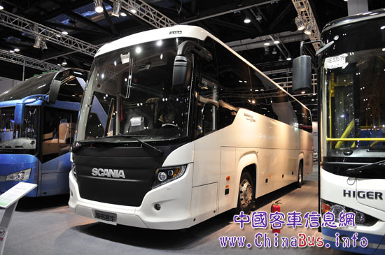 本屆車展上最具傳奇色彩、最有異域風情的展品,當屬斯堪尼亞•海格“統(tǒng)領”(SCANIA-HIGER Touring)KLQ6128QF。她是“公路之王”斯堪尼亞和蘇州金龍合作的結晶。她先后于2009年比利時世界客車博覽會、2010年漢諾威商用車展展出,并在歐洲掀起中國熱潮。