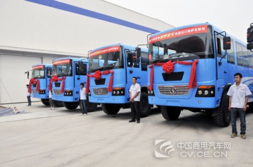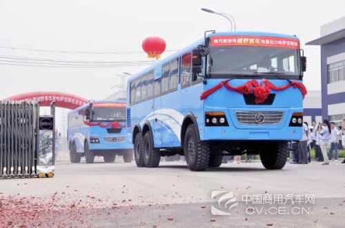 據(jù)悉,這20輛型號為SX6100SPF的沙漠越野客車,是歐舒特獨家研發(fā)、設(shè)計、生產(chǎn)的國內(nèi)首款沙漠越野客車。該車采用6×6全驅(qū)動越野卡車底盤,底盤離地高度大,具有良好的通過性,主要適用于沙漠、戈壁等道路條件惡劣的地區(qū)。其獨特的外觀、強勁的動力驅(qū)動系統(tǒng)和336大馬力發(fā)動機的支持,使之成為真正的沙漠之王、越野勇士。此款沙漠越野客車曾亮相于第十五屆中國東西部合作與投資貿(mào)易洽談會(簡稱:西洽會),并受到了與會領(lǐng)導(dǎo)、嘉賓及汽車愛好者的廣泛關(guān)注及一致贊揚。