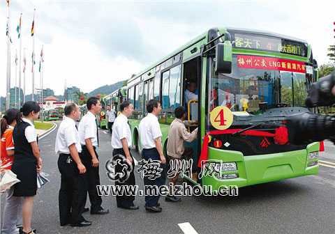6月17日上午,隨著10輛車(chē)身披嫩綠盛裝并加滿綠色新能源——LNG(液化天然氣)的公交車(chē)從客天下旅游產(chǎn)業(yè)園駛出投入梅城4路公共汽車(chē)線路運(yùn)行,標(biāo)志著梅州公共汽車(chē)正式進(jìn)入新能源時(shí)代,同時(shí)也標(biāo)志著梅州公共服務(wù)領(lǐng)域使用新能源汽車(chē)走在全省山區(qū)市前列。