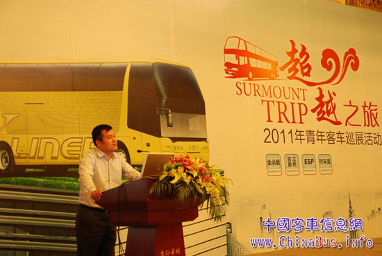 9月28日在上海市東郊賓館,青年客車“超越之旅”巡展上海站拉開了帷幕。上海交通運輸,及青年客車集團、上海客運行業(yè)相關(guān)領(lǐng)導(dǎo)等參加了此次活動。青年客車副總裁、董事鄭健致歡迎詞。