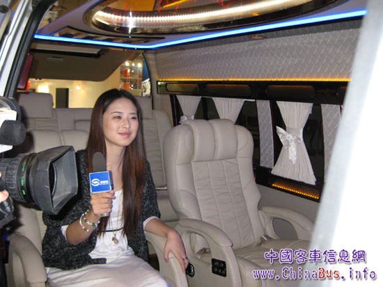 電視臺(tái)記者在海格新大海獅車內(nèi)采訪報(bào)道