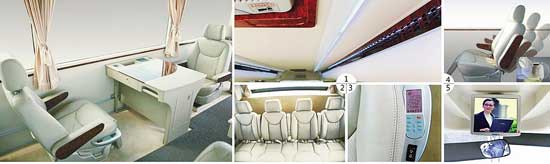 安凱尊榮AK9在內(nèi)飾設(shè)計上更注重商務(wù)功能,安置的16個VIP全真皮座椅可360度旋轉(zhuǎn),便于商務(wù)洽談。車內(nèi)辦公桌內(nèi)嵌的媒體辦公設(shè)備,可支持無線上網(wǎng)和視頻演示等多種功能,此外,電冰箱、雨傘架、閱讀燈等也一應(yīng)俱全。憑借其豪華的配置和先進(jìn)的商務(wù)功能,尊榮AK9豪華商務(wù)客車受到了與會嘉賓的一致認(rèn)可。會議期間,思科公司全球副總裁兼亞太政府事務(wù)部岳雄飛、美國著名投資家兼金融學(xué)教授吉姆•羅杰斯以及美國汽車電池產(chǎn)業(yè)協(xié)會前會長、美國肯塔基州阿貢國家實驗室電池制造和開發(fā)中心主任拉爾夫•布勞德等貴賓都乘坐了安凱尊榮AK9,都對安凱尊榮AK9給予了很高的評價。吉姆•羅杰斯乘坐安凱尊榮AK9后更表示,這是他有史以來坐過最豪華、最舒適的客車。
