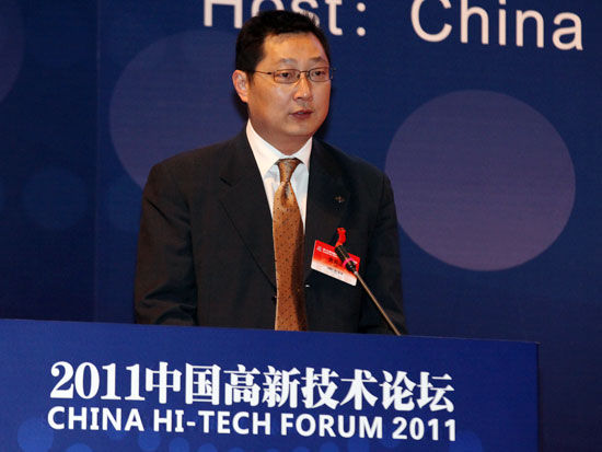 2011年11月18日,2011中國高新技術(shù)論壇低碳技術(shù)與新能源峰會在深圳會展中心舉行,圖為安徽安凱汽車公司董事長王江安。