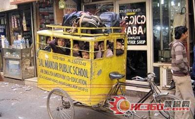 也不是所有國家的校車都那么安全,例如印度。看看這輛三輪兒的“籠子”,十幾個孩子擠在里面,要多憋屈有多憋屈。