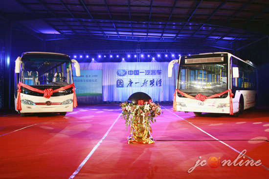 一汽客車有限公司是一汽集團(tuán)的全資子公司,是我國重要的客車生產(chǎn)企業(yè)之一,從2000年開始致力于新能源客車的研發(fā),為多個試點城市提供混合動力、純電動客車,成為國家最早的新能源客車定點生產(chǎn)企業(yè),具備年產(chǎn)15000輛大客車整車和20000輛客車底盤的生產(chǎn)能力。這批客車是由一汽客車提供整車框架,由唐一新能源提供的動力電池和電池控制系統(tǒng)裝備,這也是雙方在電動汽車領(lǐng)域的重要合作成果??蛙囈噪姵貫閯恿?,運行零排放,是集環(huán)保、節(jié)能為一體的新型汽車。今后,一汽客車與唐一新能源結(jié)成戰(zhàn)略合作伙伴,將聯(lián)合開發(fā)更多性能優(yōu)良、運行可靠的純電動客車產(chǎn)品,雙方還簽署合作協(xié)議,雙方將攜手發(fā)展純電動客車市場。