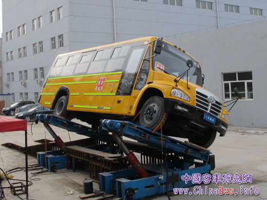 準(zhǔn)備做側(cè)傾試驗的一汽客車校車