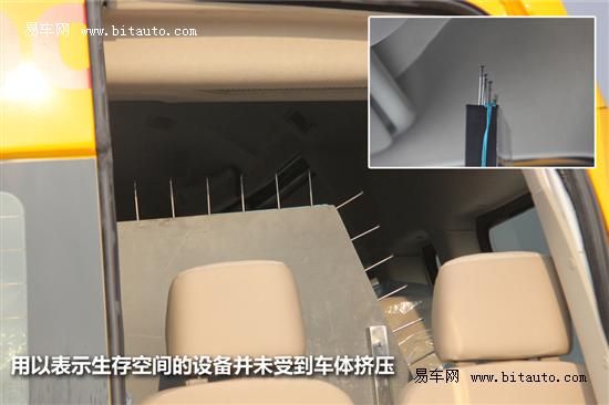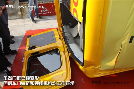 車(chē)輛內(nèi)部設(shè)置有多個(gè)用以標(biāo)示車(chē)內(nèi)生存空間范圍的設(shè)備,其頂部的鋼釘在車(chē)輛側(cè)翻后沒(méi)有突出車(chē)體外部,而車(chē)身任何部位的位移也沒(méi)有侵入鋼釘范圍內(nèi)。測(cè)試工程師采用叉車(chē)將測(cè)試車(chē)輛扶正后,車(chē)輛可正常著車(chē)并掛檔行駛。以上幾點(diǎn)表明MAXUS大通V80校車(chē)基型車(chē)在測(cè)試過(guò)程中車(chē)體結(jié)構(gòu)保持良好,動(dòng)力總成沒(méi)有受到側(cè)翻影響,內(nèi)部油液管路密封性能良好??偨Y(jié)成一句話就是MAXUS大通V80校車(chē)基型車(chē)通過(guò)了側(cè)翻實(shí)驗(yàn)的考驗(yàn),而它也是第一款車(chē)身長(zhǎng)度7米以內(nèi)還強(qiáng)制進(jìn)行側(cè)翻實(shí)驗(yàn)的商用車(chē)型。