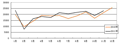 1-11月,大中型客車同比增幅為11.49%,而輕型客車的同比增幅只有1.08%,累計銷量中,大中型客車138736輛,占65.63%,輕型客車72667輛,占34.37%,與上年同期相比,大中型客車的份額提高了2.25個百分點(diǎn)。這種變化在客車市場的發(fā)展過程中并不多見,是客車企業(yè)經(jīng)營質(zhì)量提高的主要利好因素之一。