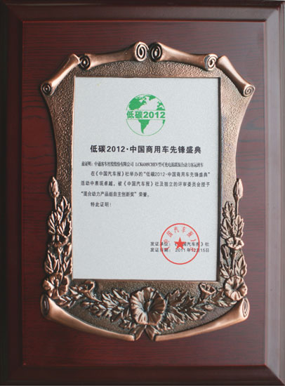 低碳2012.中國商用車先峰盛典證書