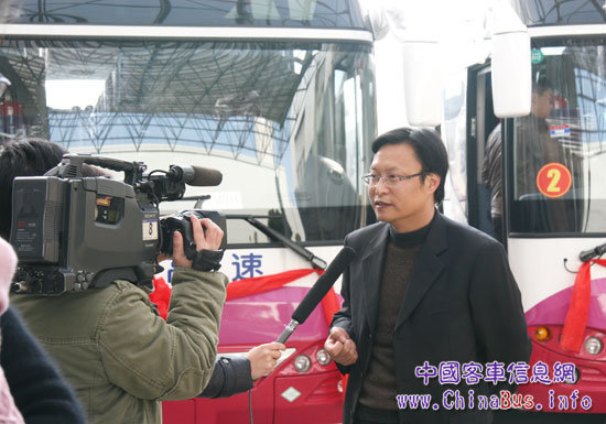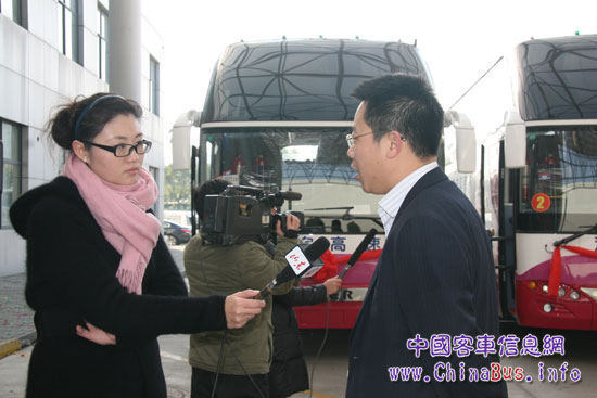 12月9日,蘇州金龍公司廠區(qū)內(nèi),11輛海格液化天然氣(LNG)客車披紅掛彩、整裝待發(fā),恰似待嫁的“新娘”?!靶履锏钠偶摇鄙綎|省交運(yùn)集團(tuán)也十分重視此批車輛的交付。山東交運(yùn)集團(tuán)黨委副書記楊國(guó)強(qiáng)帶領(lǐng)山東省電視臺(tái)、《齊魯晚報(bào)》社、《濟(jì)南時(shí)報(bào)》社、濟(jì)南市電臺(tái)、濟(jì)南市電視臺(tái)等山東主流媒體記者代表專程赴蘇州金龍迎接此批清潔能源客車。